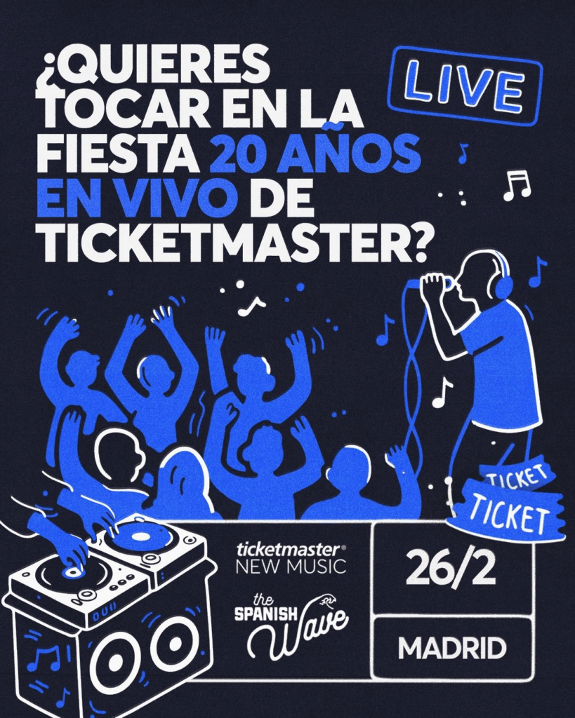 ¡Enséñanos tu talento! Si quieres formar parte de esta celebración, que sepas que el o la artista elegidx de esta convocatoria abierta, además de actuar en la fiesta del 20 Aniversario de Ticketmaster España, también participará en uno de los festivales internacionales más influyentes de la mano de The Spanish Wave en 2026. ¡Esta es la tuya!